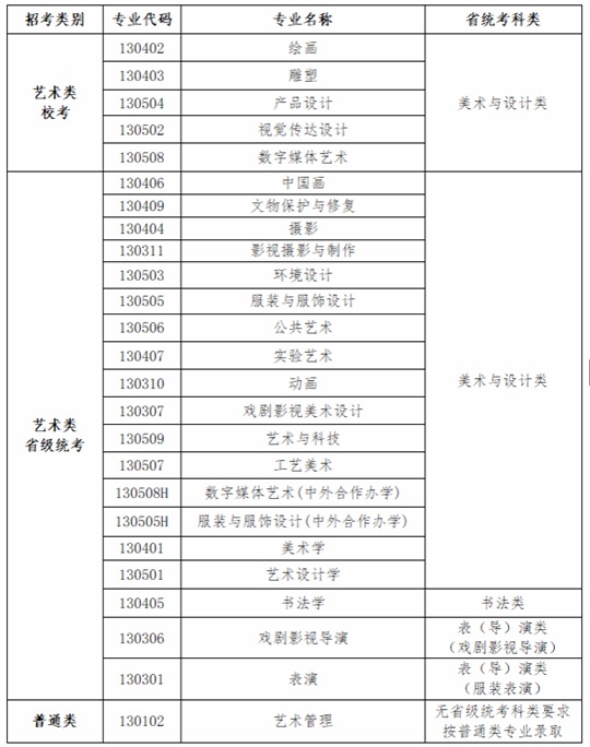 魯迅美術學院2026年本科招生專業省統考科類對應要求 |