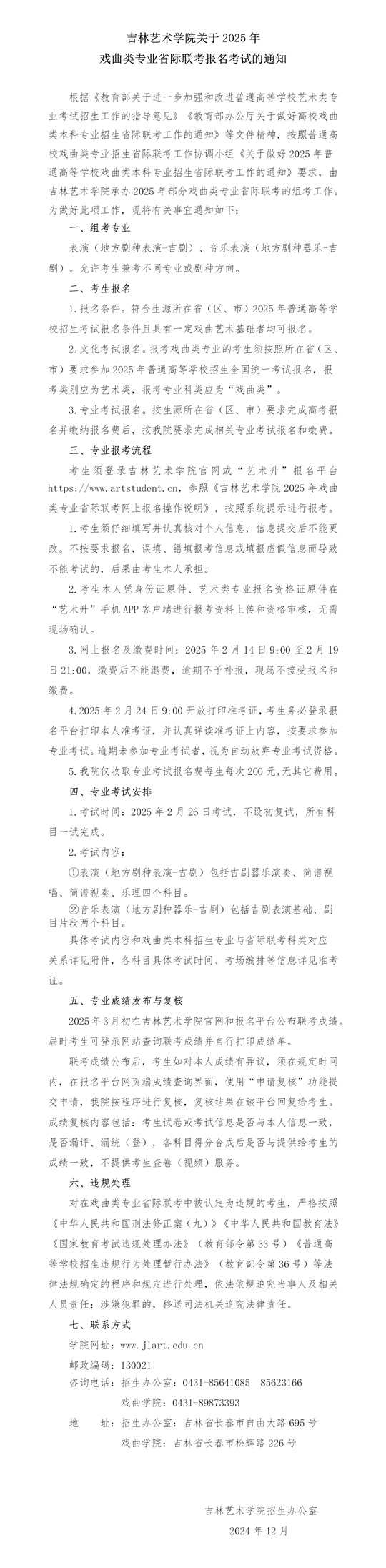 吉林藝術學院關于2025年戲曲類專業省際聯考報名考試的通知 |