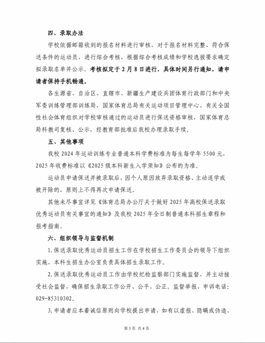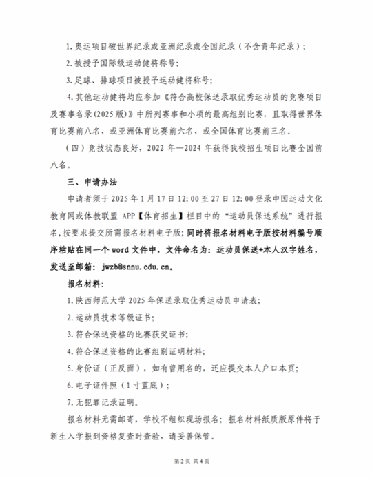 陜西師范大學2025年保送錄取優秀運動員招生簡章