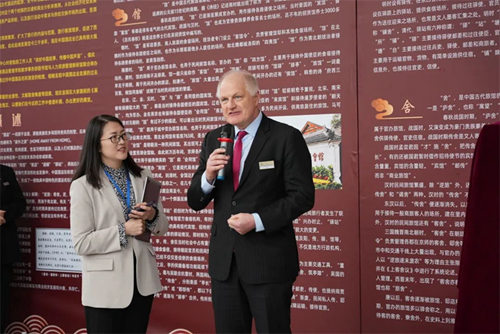座談結束后,Dominic Szambowski校長出席了中瑞圖書館舉辦《中國酒店名稱演變——上下三千年》展覽揭幕儀式,致辭并參與揭幕。