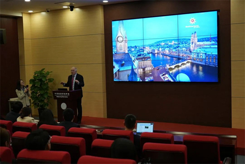 下午,Dominic Szambowski校長為中瑞的同學們帶來了《Global Hospitality Industry Trends and Education in Switzerland》主題講座。此次講座,他為學生們介紹瑞士先進的教育模式,分享他在酒店管理教育領域多年的經驗和心得,并分析了酒店管理行業的最新發展動態和未來可持續發展的趨勢。講座現場,同學們紛紛表示受益匪淺,對酒店管理行業有了更加深入的了解。