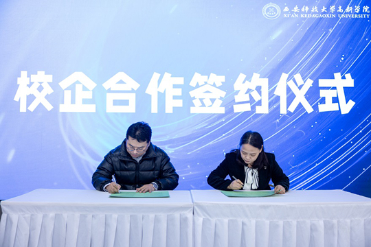 (圖二)西安科技大學高新學院在“華為ICT專場招聘會”簽訂人才培養相關協議