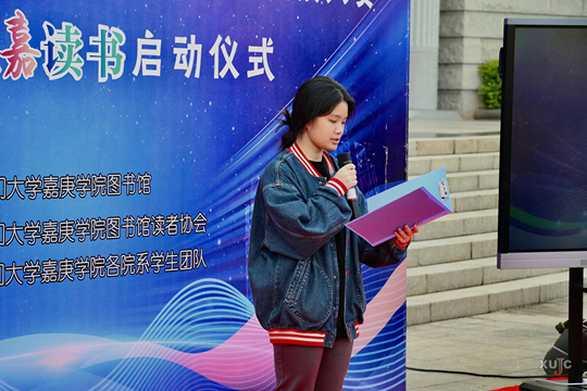讀者協會郝子儆、王彭灝、廖海月、徐嘉欣、楊梓晗帶來的朗誦《書香中國》拉開了活動的序幕。啟動儀式上,廈門大學嘉庚學院各院系近300名師生代表齊聚一堂。圖書館館長王株梅為“在‘嘉’讀書”系列活動之“短視頻創作大賽”獲獎者及2024年度“優秀讀者”代表頒獎,通過表彰優秀創作者與閱讀榜樣,實現兩屆讀書節的精神傳承。