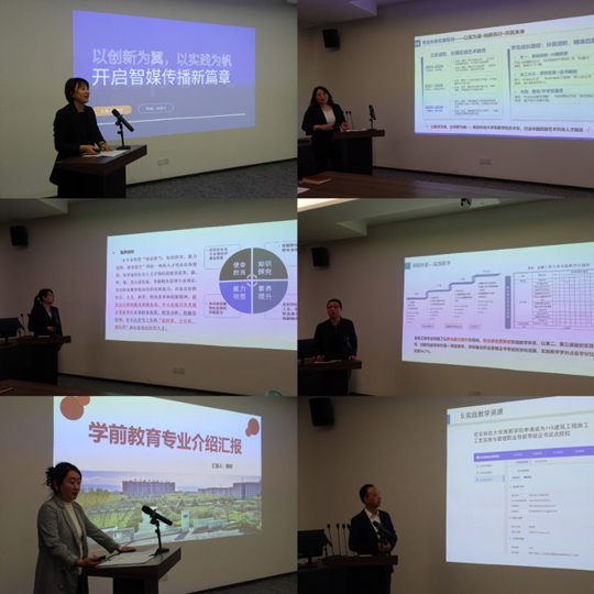 答辯會由招生辦的高悅榕老師主持,各二級學院的專業負責人依次上臺進行專業匯報。匯報內容涵蓋了專業概況、師資隊伍、課程設置、實踐教學、產教融合、就業前景等多個方面,充分展現了學院各專業的獨特魅力與發展潛力。
