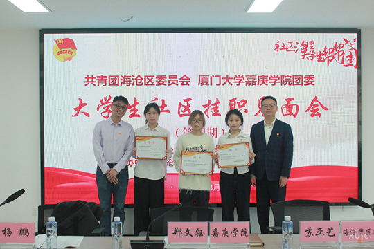 此次合作,廈門大學嘉庚學院共有15位青年學生骨干掛職海滄團屬崗位,10個服務項目落戶2個街道,預計覆蓋5個社區(村)。活動現場,與會領導為本期掛職學生頒發聘書。