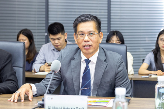 沙撈越大學(xué)商學(xué)院行政總裁Puah Chin Hong全面介紹了該校的辦學(xué)優(yōu)勢(shì)、現(xiàn)有國(guó)際合作網(wǎng)絡(luò)及未來(lái)發(fā)展規(guī)劃。他特別指出,作為馬來(lái)西亞重點(diǎn)公立大學(xué),沙撈越大學(xué)高度重視與中國(guó)高校的合作,期待通過(guò)此次學(xué)習(xí)中心的建立,實(shí)現(xiàn)"優(yōu)勢(shì)互補(bǔ)、資源共享"的合作愿景,共同打造中馬高等教育合作的典范。