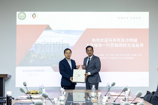 5月12日,馬來(lái)西亞沙撈越大學(xué)(UNIMAS)校長(zhǎng)一行蒞臨西安科技大學(xué)高新學(xué)院交流訪問(wèn),雙方舉行“馬來(lái)西亞沙撈越大學(xué)西安學(xué)習(xí)中心”啟動(dòng)儀式并共同為學(xué)習(xí)中心揭牌,該中心是馬來(lái)西亞教育部批準(zhǔn)的首個(gè)公立大學(xué),海外學(xué)習(xí)中心的成立標(biāo)志著兩校國(guó)際化合作邁入新階段。