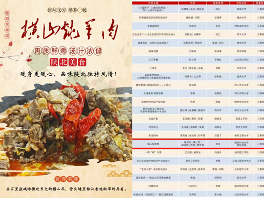 第九屆米蘭設計周——中國高校設計學科師生優秀作品展「設計賦能“土特產”、助力鄉村振興」公益賽道獲獎名單揭曉,西安科技大學高新學院傳媒系網絡與新媒體專業學生陸賀傳、黃仕瑩、禇孟根、楊懌、周世豪組成的團隊,憑借作品《橫山燉羊肉》,在「設計賦能土特產 、助力鄉村振興」公益賽道中斬獲全國三等獎。這一成績的取得,既是學生專業素養的集中體現,也是學院「以賽促教、產教融合」的教學成果展現。