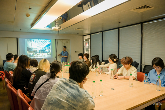 在CTD川田,該公司設計總監、廈門大學嘉庚學院2009屆藝術設計專業校友鄧乾宇帶領師生一行參觀了辦公環境,并分享公司經典案例。從商業空間到文旅項目,他詳解不同項目在設計理念和執行方式上的差異,并指出隨著市場變化,設計師需不斷適應業主新的理念需求。此外,他還強調“以人為本”的核心邏輯,注重在地文化與設計方案的融合。以建寧荷花精品酒店為例,鄧乾宇展示了其設計靈感與地域特色的創新結合。