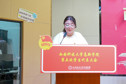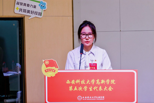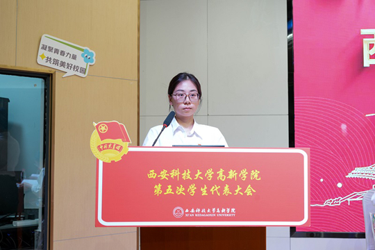 。▓D二)趙榮玉宣讀《西安科技大學高新學院第五次學生代表大會籌備工作報告》