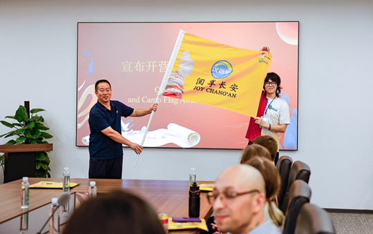 開營儀式上,西安科技大學高新學院院長汪仁致辭,他對此次夏令營活動的開展表示熱烈祝賀,“長安是中華文明的重要發祥地,希望英國同學們能在‘閱享長安’的過程中,深入了解中國語言文化,與中國青年建立深厚友誼。”隨后,西安科技大學高新學院黨委書記劉琳宣布此次“閱享長安”夏令營活動正式開始,并為本次活動進行授旗;與此同時,西安科技大學高新學院副院長潘昊代表學校向英國肯特大學中文部負責人蘇茹老師贈送禮物,蘇茹老師也表達了英國肯特大學的師生對此次夏令營的期待,希望英國學生能在西安留下美好的回憶,學有所獲。