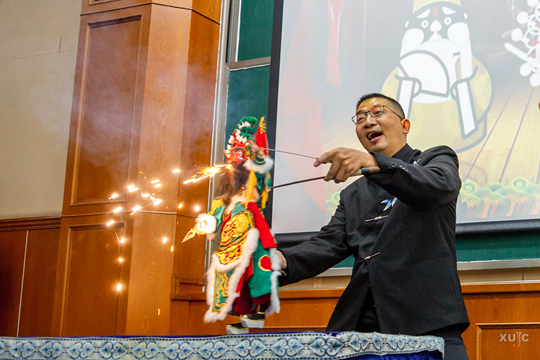 現(xiàn)場,師生們切身體驗了閩南文化的魅力。省技能大師、省級非遺傳承人、福建省鄉(xiāng)村工匠名師陳銀龍帶來了鐵枝木偶戲表演《關(guān)公開臺》,將儀式氛圍推向高潮。該劇目大膽創(chuàng)新,巧妙融合京劇元素與流行音樂,打造別具一格的戲歌形式,讓傳統(tǒng)鐵枝木偶戲煥發(fā)出新的生機。