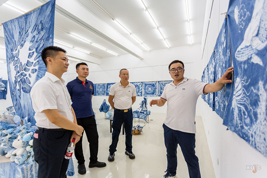 儀式結(jié)束后,嘉賓與師生共同參觀了設(shè)計與創(chuàng)意學院在嘉庚美術(shù)館舉辦的“由染而生”扎染創(chuàng)意設(shè)計綜合藝術(shù)展,感受“青出于藍而勝于藍”的創(chuàng)意魅力。