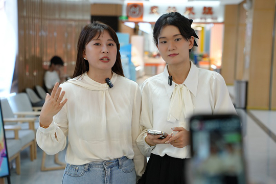 觀眾們跟隨主播的腳步穿過幽靜的樹林來到校園的生活區(qū)域,校園生活區(qū)域同樣是本次直播的重點。主播們帶領(lǐng)大家走進(jìn)了干凈整潔的學(xué)生宿舍,介紹了宿舍的設(shè)施配備和管理規(guī)定,溫馨的住宿環(huán)境讓大家對未來的大學(xué)生活充滿了期待。在食堂,色香味俱佳的美食吸引了眾多觀眾的目光,主播們還分享了食堂豐富多樣的菜品選擇和好喝的飲品。此外,美麗的校園景觀、充滿活力的運動場以及各類學(xué)生活動中心也一一呈現(xiàn)在觀眾眼前,展現(xiàn)了我院豐富多彩的校園生活。