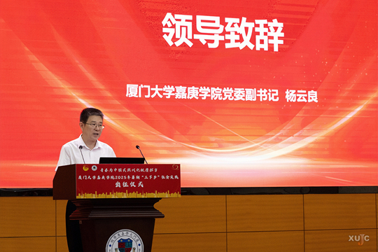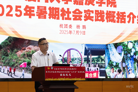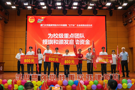7月9日,廈門大學(xué)嘉庚學(xué)院2025年暑期“三下鄉(xiāng)”社會(huì)實(shí)踐出征儀式在公共教學(xué)樓1號(hào)樓101多功能報(bào)告廳舉行。儀式由學(xué)工部、團(tuán)委主辦,校青年志愿服務(wù)指導(dǎo)中心承辦。