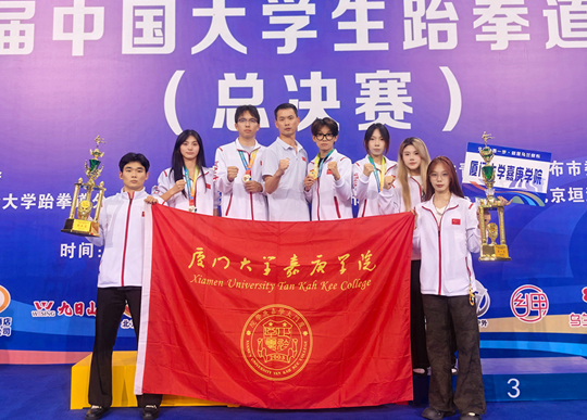 來自全國(guó)各地的155所高校、1000余名運(yùn)動(dòng)員參加了本次比賽。廈門大學(xué)嘉庚學(xué)院跆拳道隊(duì)以南方賽區(qū)冠軍之姿出征,在強(qiáng)敵環(huán)伺中頂住壓力,以2金1銀3銅及2個(gè)第五名的輝煌戰(zhàn)績(jī),實(shí)現(xiàn)甲組競(jìng)技團(tuán)體總分全國(guó)四連冠。
