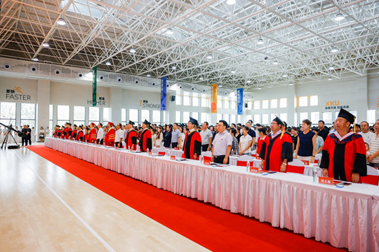 7月3日上午,西安科技大學高新學院2025年畢業典禮暨學位授予儀式在體育館隆重舉行。學院領導、學位評定委員會成員、各二級學院部門負責人、教師代表、畢業生及家長代表齊聚一堂,共同見證2025屆畢業生的重要時刻,儀式由學院副院長王國良主持。畢業典禮在莊嚴的《中華人民共和國國歌》聲中正式拉開帷幕,全體師生肅立齊唱國歌,激昂的旋律回蕩在體育館內。