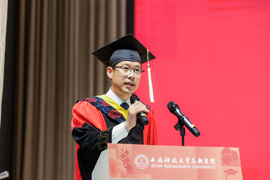 學院院長汪仁以“勇當AI時代排頭兵 爭做社會主義建設生力軍”為題,在畢業典禮上致辭:“今天,我們滿懷喜悅,在此隆重舉行西安科技大學高新學院2025屆學生畢業典禮,共同慶祝3988名學子圓滿完成學業,即將踏上人生新的征程。同學們,臨別之際,我想再送你們三件“錦囊”。一是,帶上“紙上得來終覺淺”的求知精神,做終身學習的登山者。二是,帶上“絕知此事要躬行”的實踐態度,做腳踏實地的奮斗者。三是,帶上“寸草報得三春暉”的感恩之心,做社會正能量的傳遞者。同學們,當離別的旋律響起,請記住彩虹橋上遠眺的秦嶺輪廓,那是母校永遠守望你們的姿態;請記住圖書館前的松柏樹,那是指引遠航的你們回家的燈塔。愿你們此去以知識為帆,以奮斗為槳,以感恩為翼,在人生的航程中乘風破浪,在各行各業爭當排頭兵,奮力書寫為中國式現代化挺膺擔當的青春篇章。最后,衷心地祝愿你們“大鵬一日同風起,扶搖直上九萬里”!愿你們,前程似錦,幸福安康!”