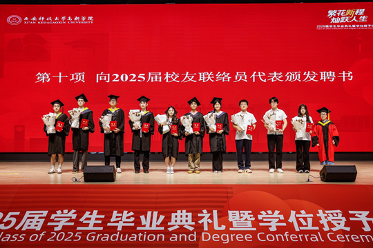常務副院長張淑萍為校友聯絡員頒發聘書,校友聯絡員作為維系畢業生與母校情感的重要紐帶,將肩負起傳承高新精神、凝聚校友力量的光榮使命,畢業不是散場,“高新”永遠是你們的港灣和后盾。
