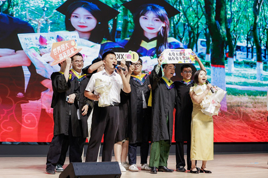 在這離別之際,科大高新教職工代表獻上詩歌朗誦《我驕傲,我是科大高新人》并傾情演唱經典歌曲,用真摯的表演為畢業生送上最溫暖的祝福。