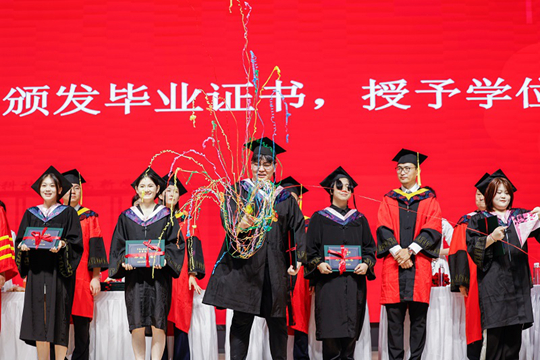 典禮上,學院副院長潘昊宣讀了《關于2025屆本專科學生準予畢業及授予學士學位的決定》,標志著高新學子們正式完成學業,邁向人生新階段。隨后與會領導和學位評定委員會委員,共同為畢業生撥穗,頒發畢業證、學位證。