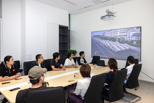 (圖六)老師們?cè)跁?huì)議室觀看閱兵直播