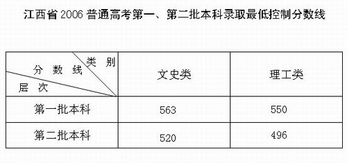 江西省2006高考第一、第二批本科錄取分數線