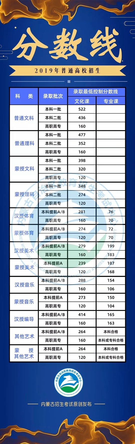 內(nèi)蒙古2019年高考分數(shù)線出爐