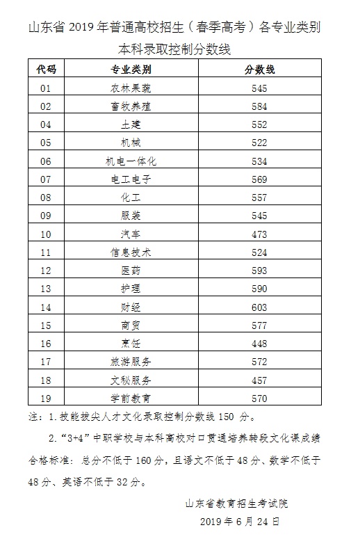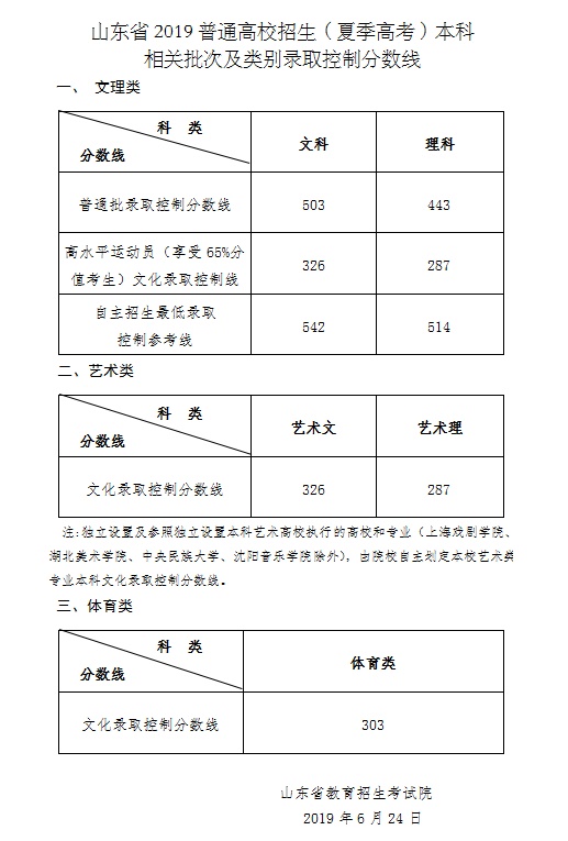 山東省2019年高考錄取控制分數線出爐!文科503理科443 |