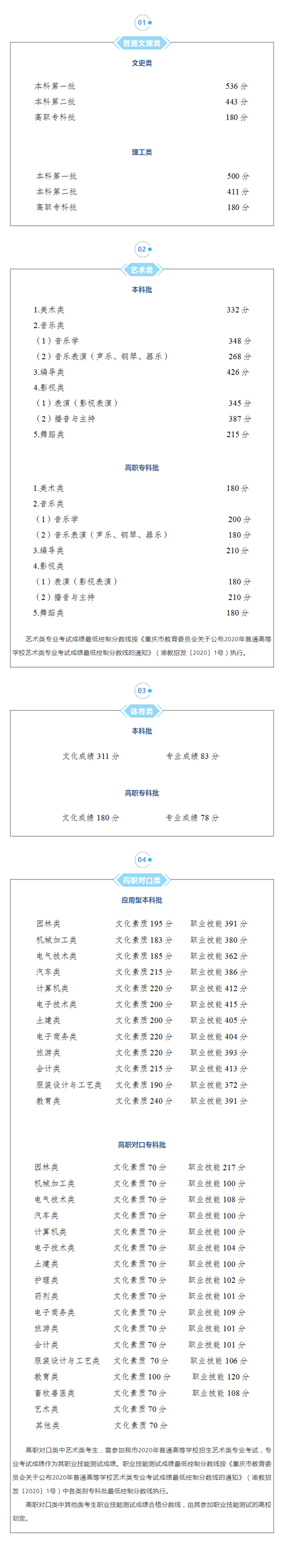 重慶市2020年全國普通高校各類招生錄取最低控制分數線出爐 |