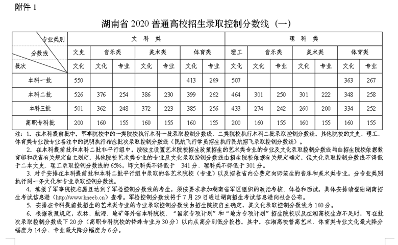 湖南公布2020年普通高校招生錄取控制分數(shù)線 |