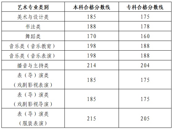 山東省2024年普通高校招生藝術類專業統考合格分數線 |
