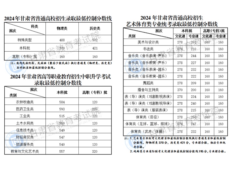 2024年甘肅省普通高校招生錄取最低控制分?jǐn)?shù)線