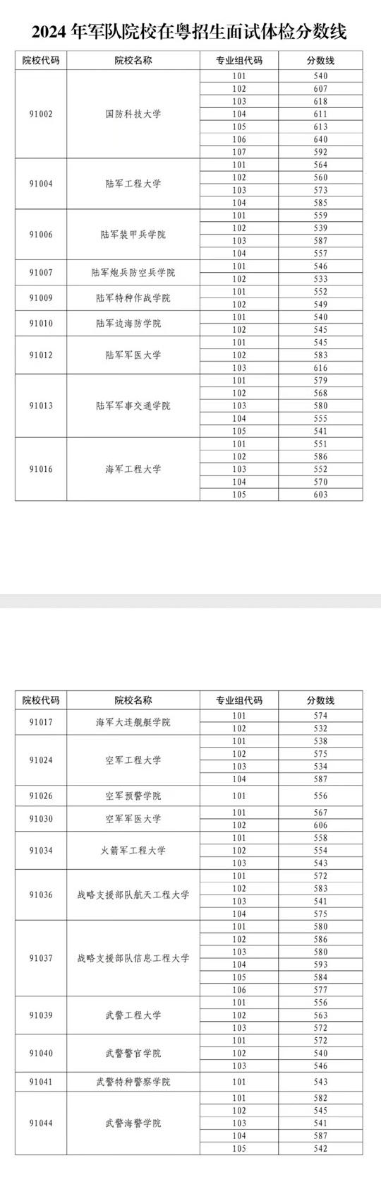1.2024年軍隊院校在粵招生面試體檢分數線