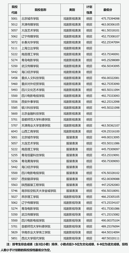 山西省2024年普通高校招生第二批本科C類(表<導>演類)院校投檔最低分