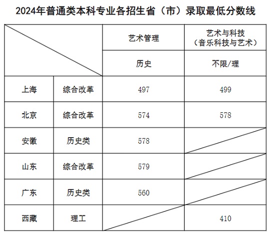 上海音樂學院2024年普通類本科專業各招生省(市)錄取最低分數線