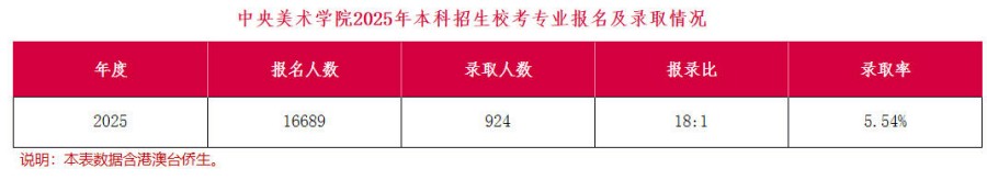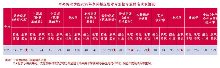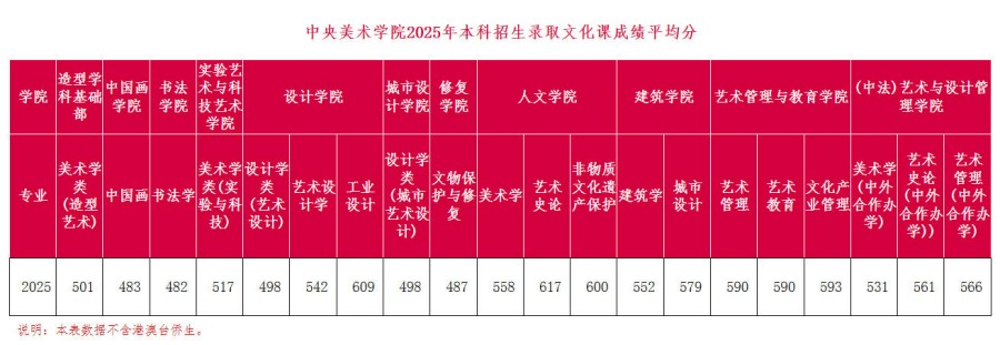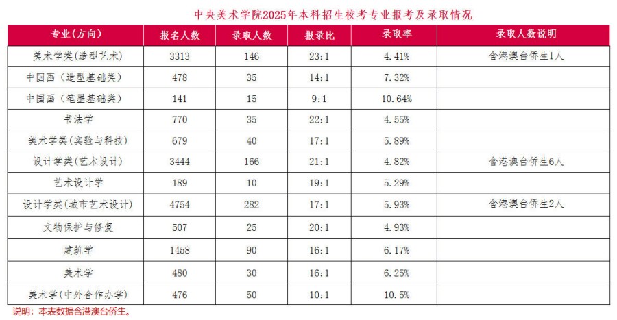 中央美術學院2025年本科招生錄取數據參考