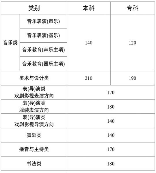 云南省2025年普通高校招生藝術類省級統考專業成績錄取最低控制分數線