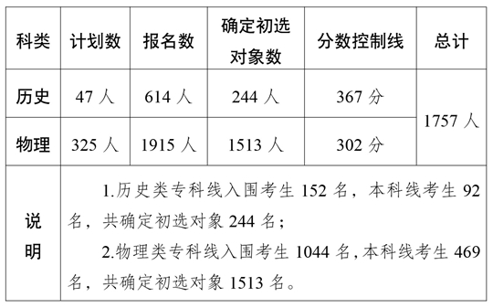 6月25日至30日,全區(qū)2866名考生填報定向培養(yǎng)軍士志愿,符合招收條件2529人,按照本科線報名考生直接確定為體格檢查和政治考核初選對象,專科線考生以考分從高到低的順序,按招收計劃數(shù)3.2倍比例劃定入圍分?jǐn)?shù)線,共確定初選對象1757人,具體公布如下: