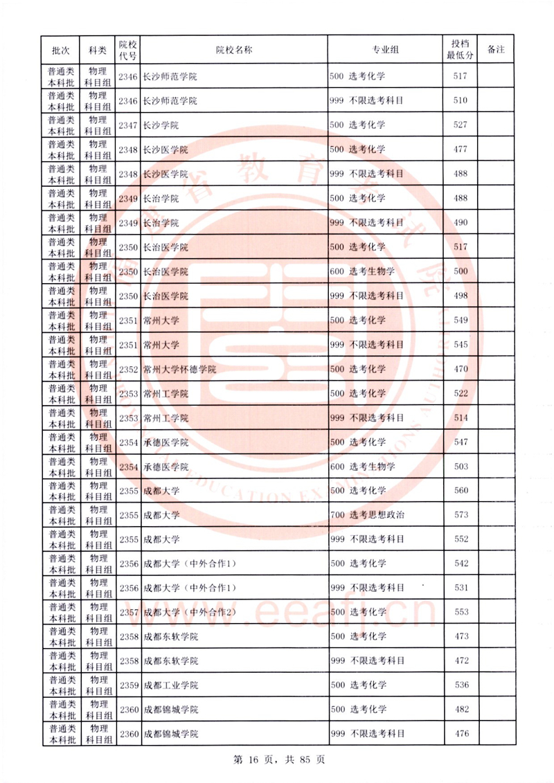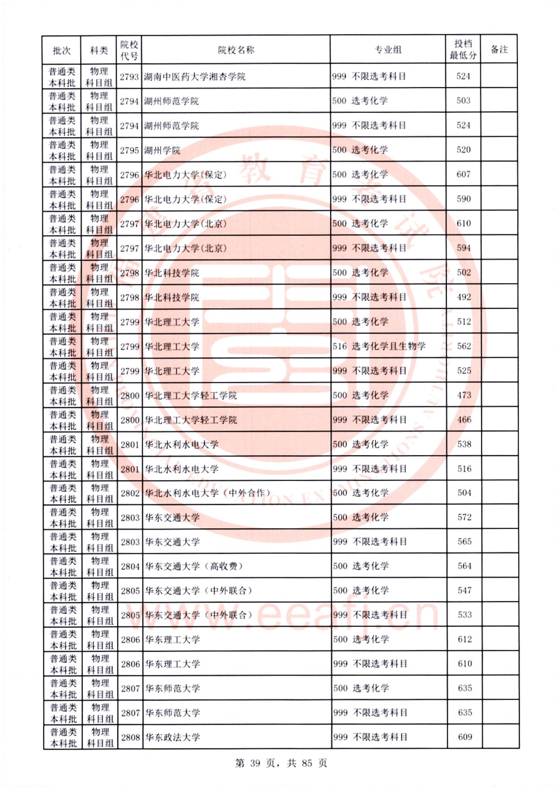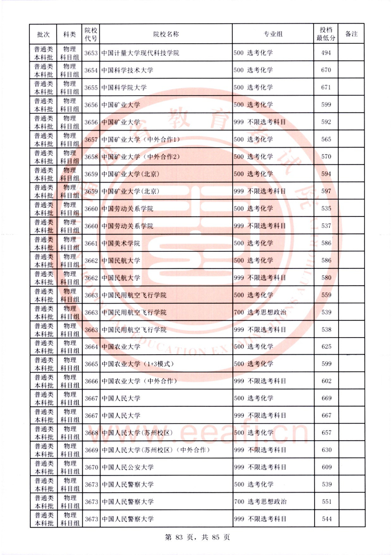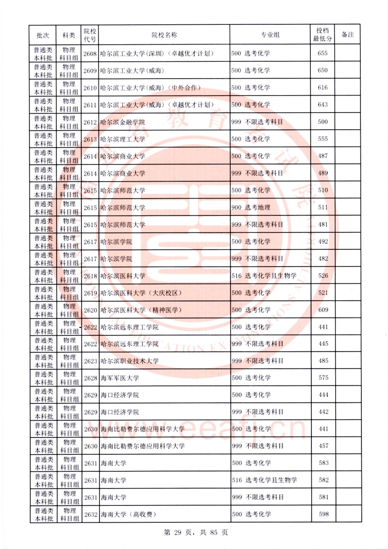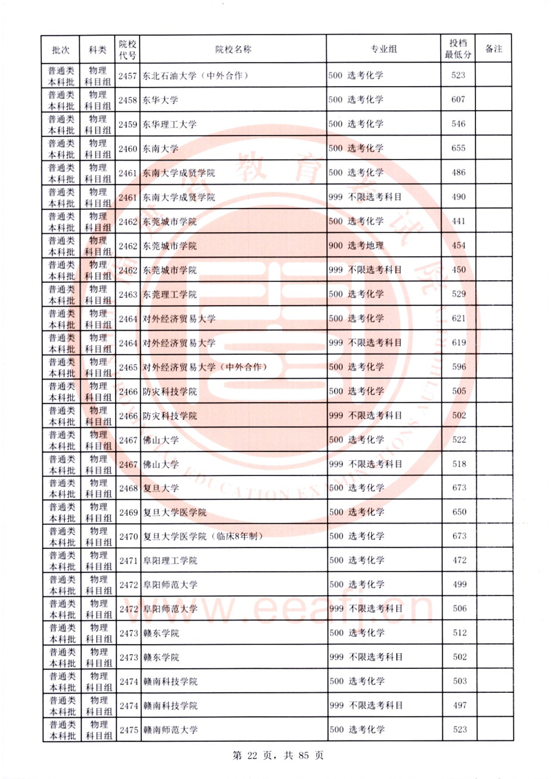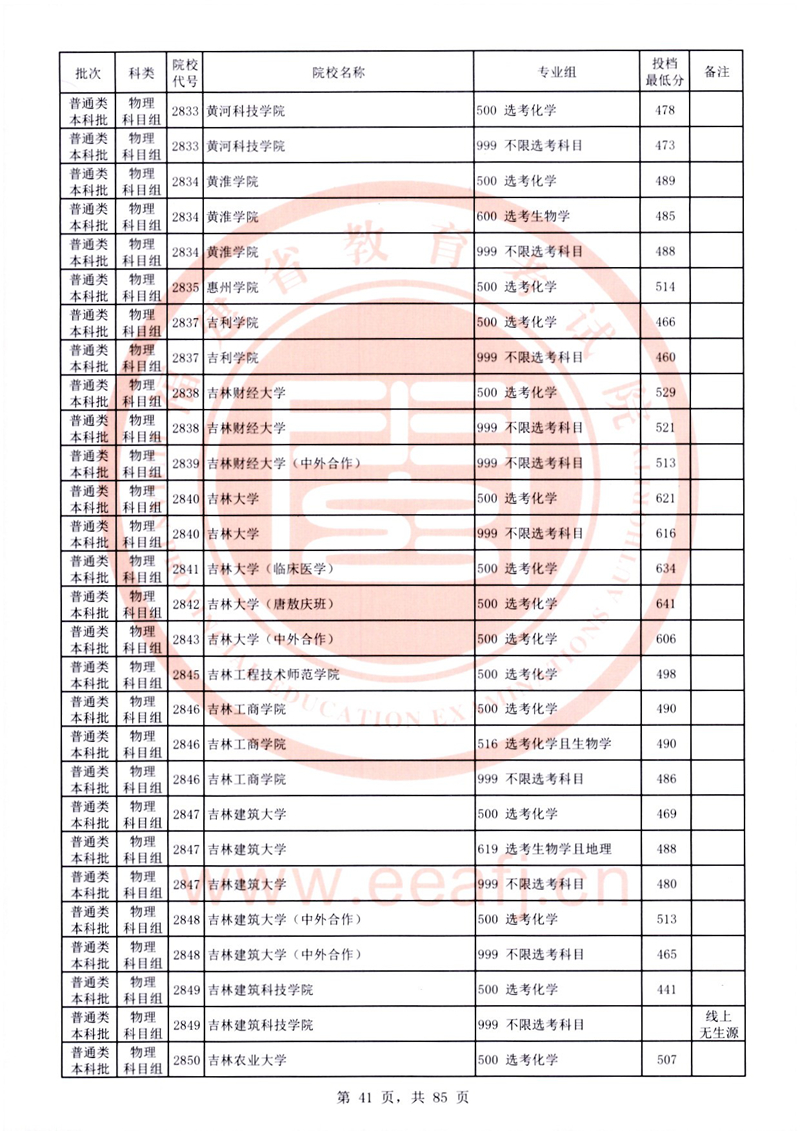 福建:2025年普通類本科批常規志愿院校專業組投檔最低分公布(物理科目組)