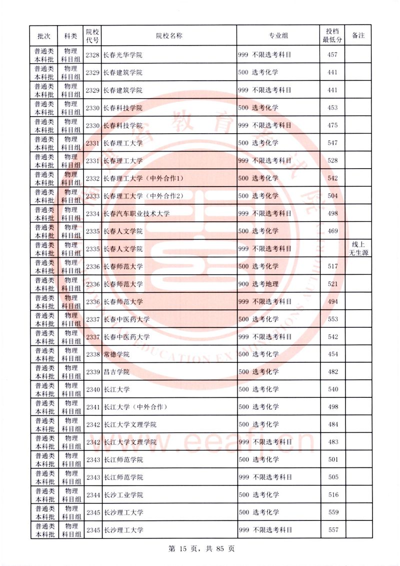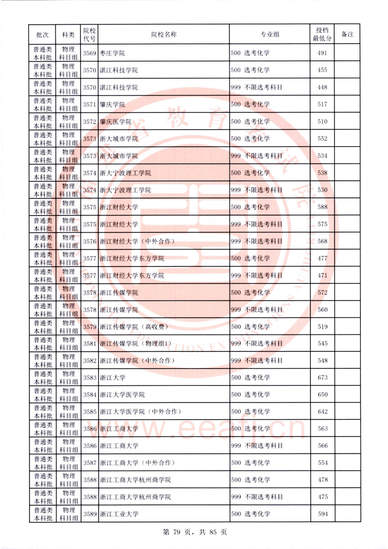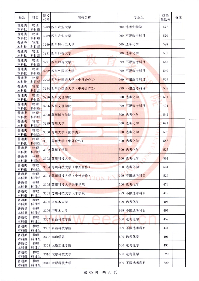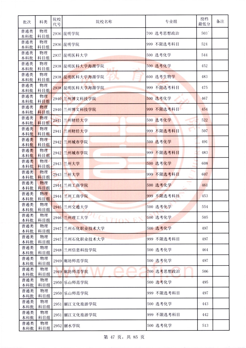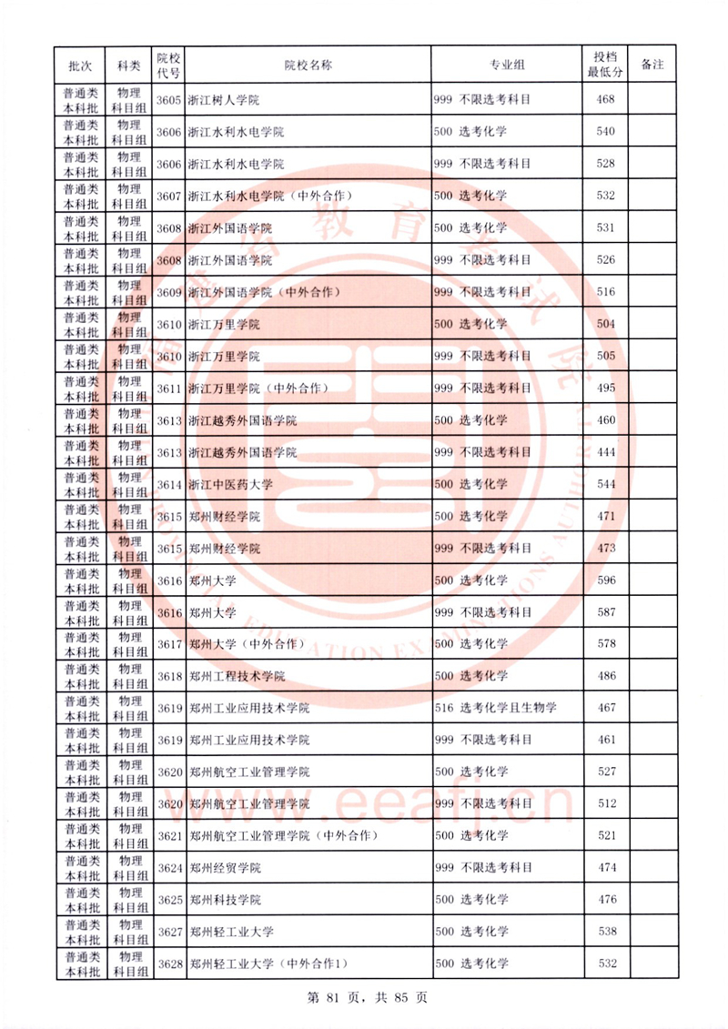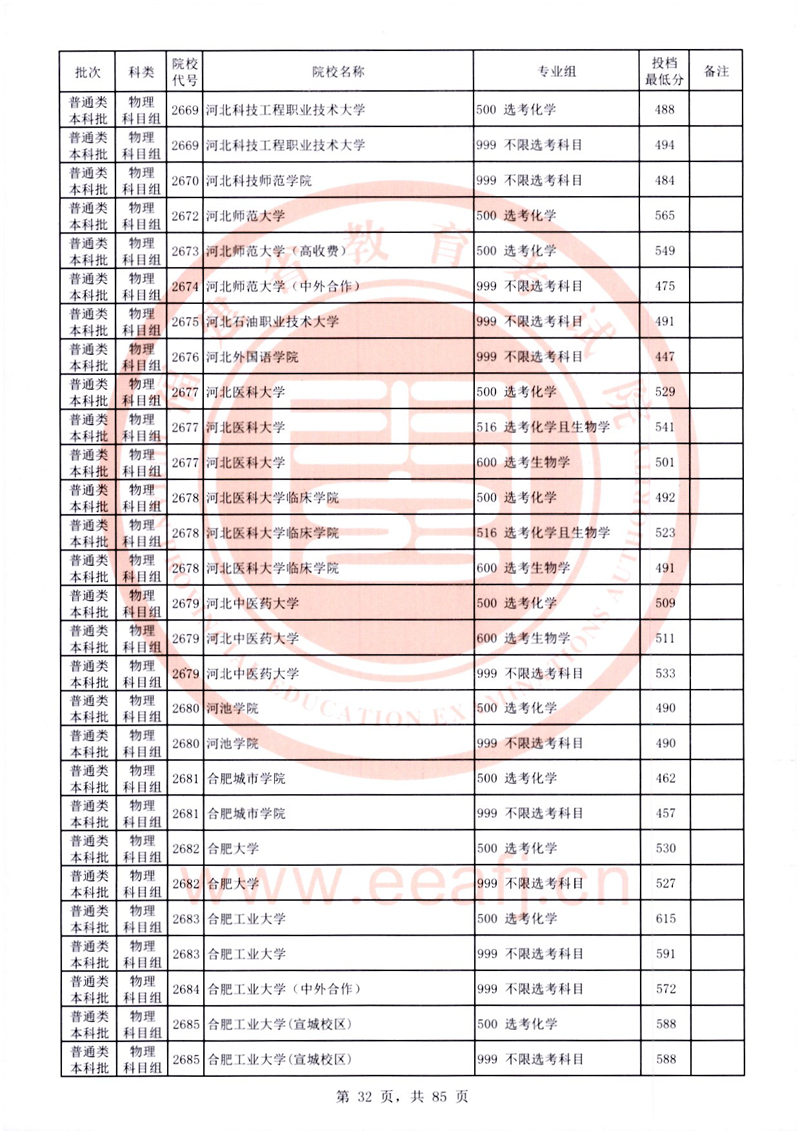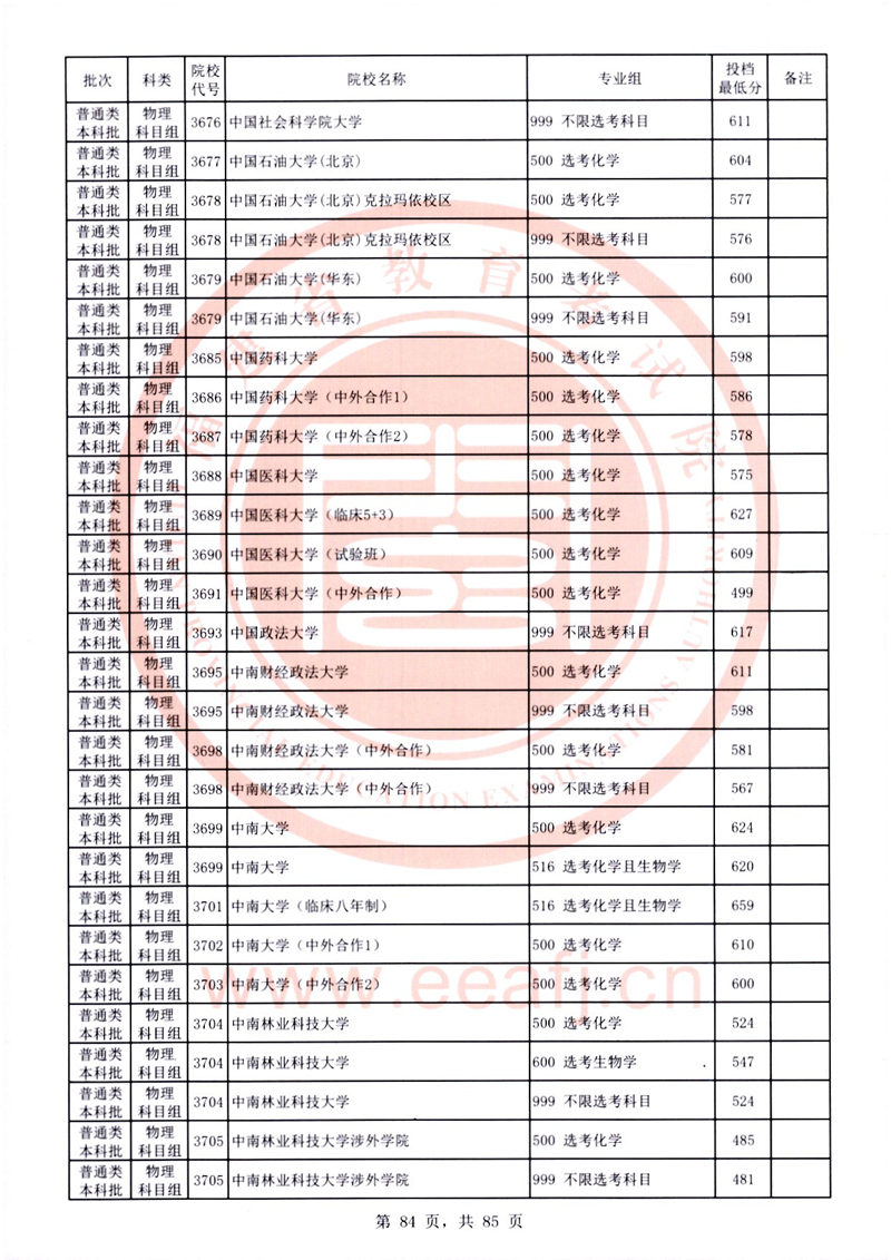 福建:2025年普通類本科批常規志愿院校專業組投檔最低分公布(物理科目組)