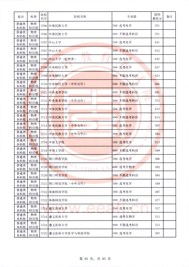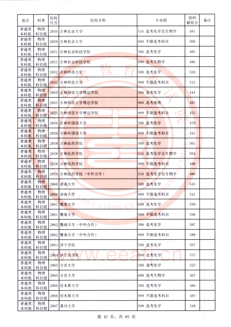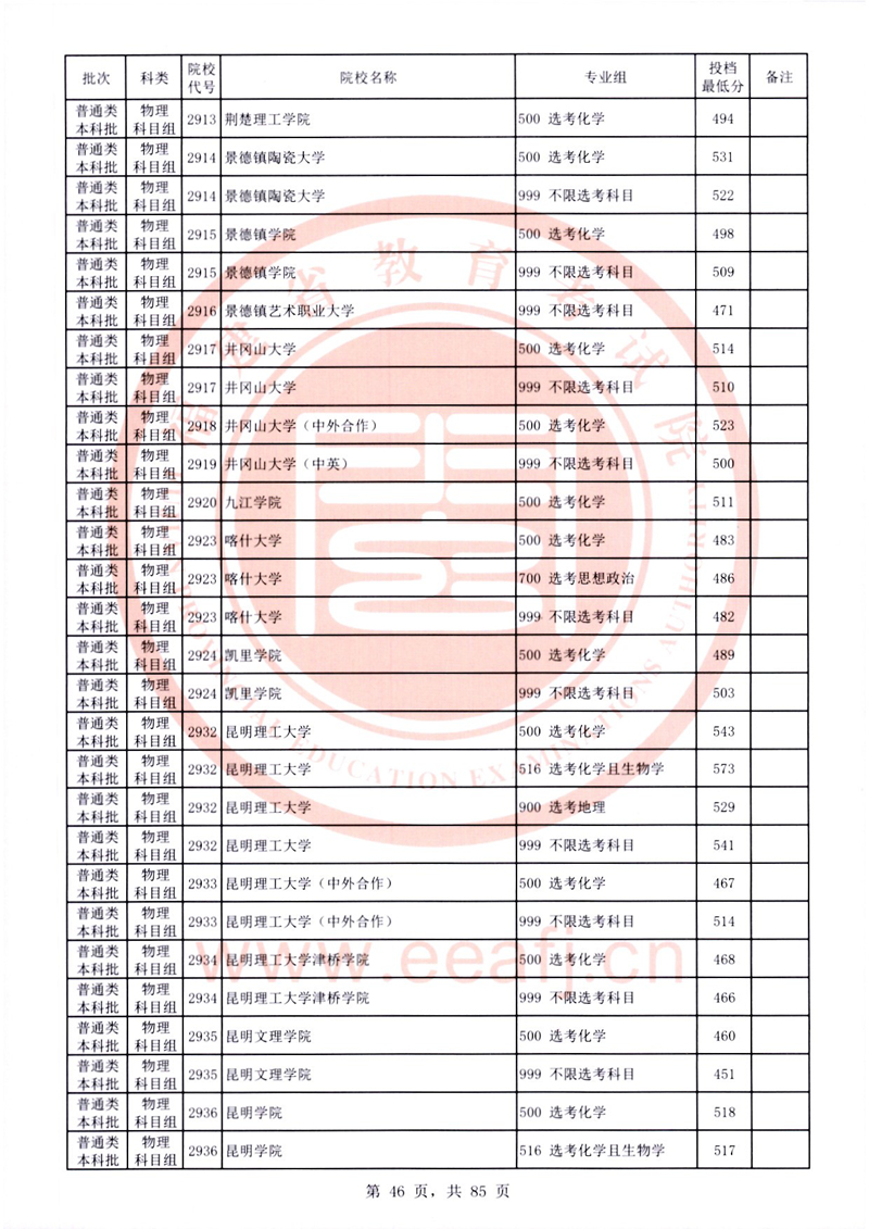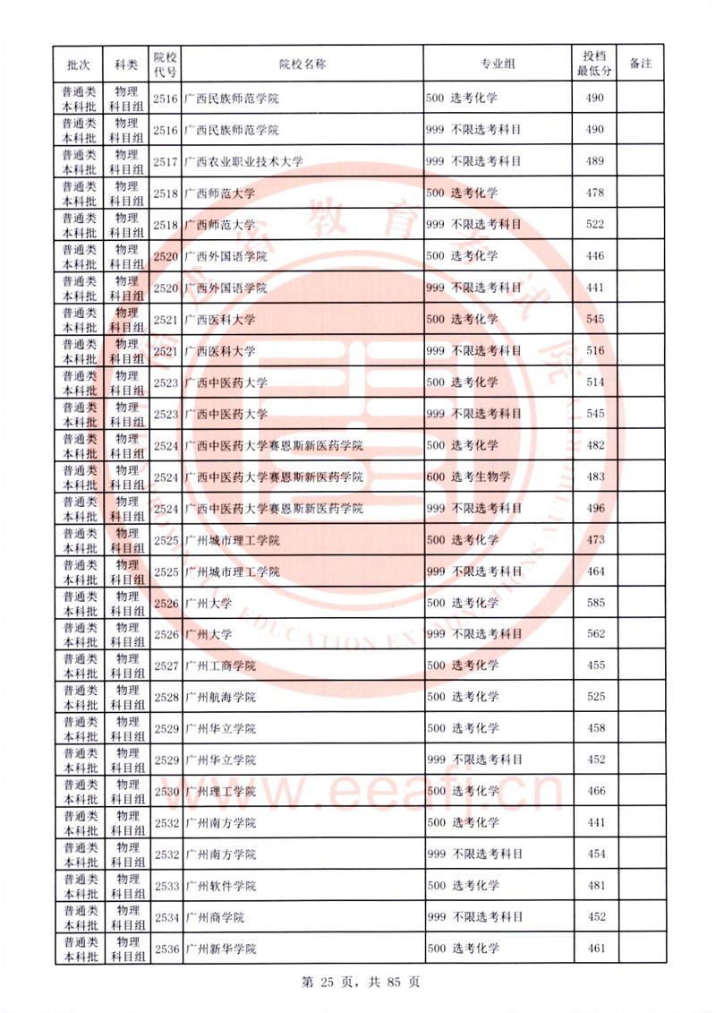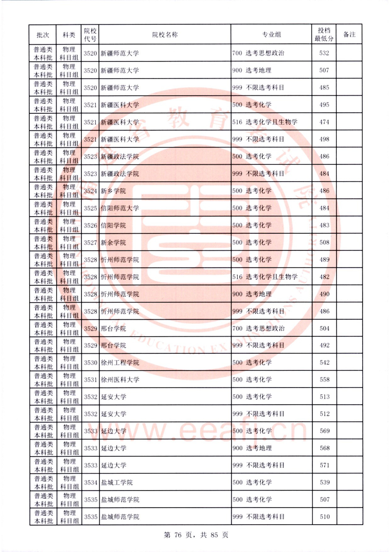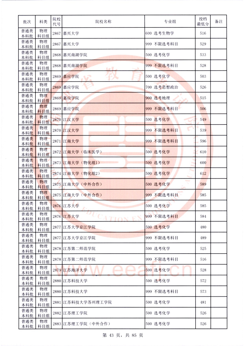 福建:2025年普通類本科批常規志愿院校專業組投檔最低分公布(物理科目組)