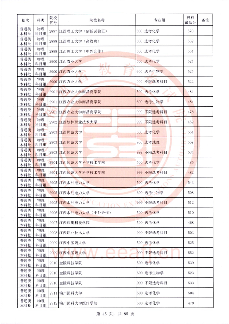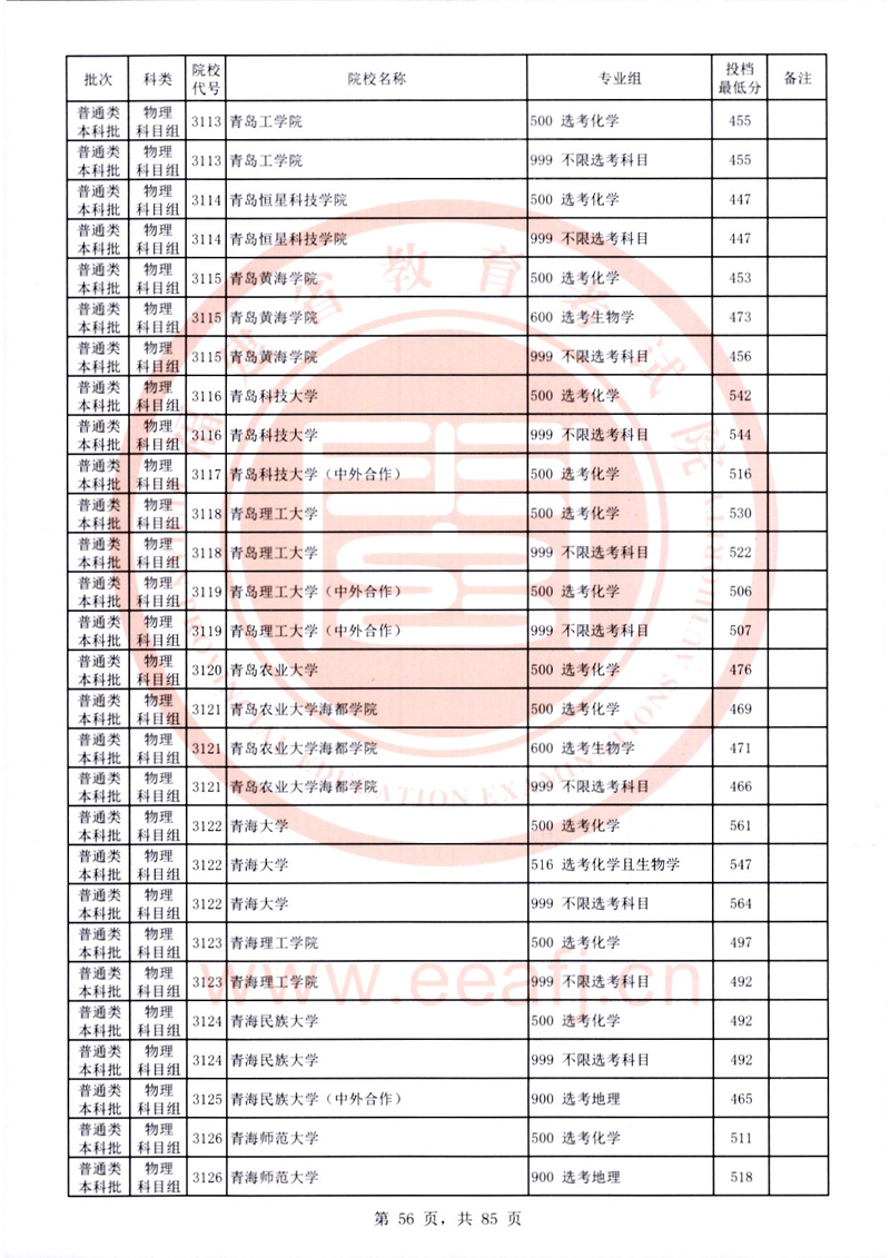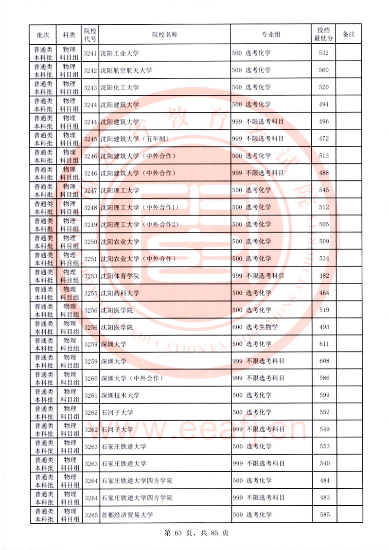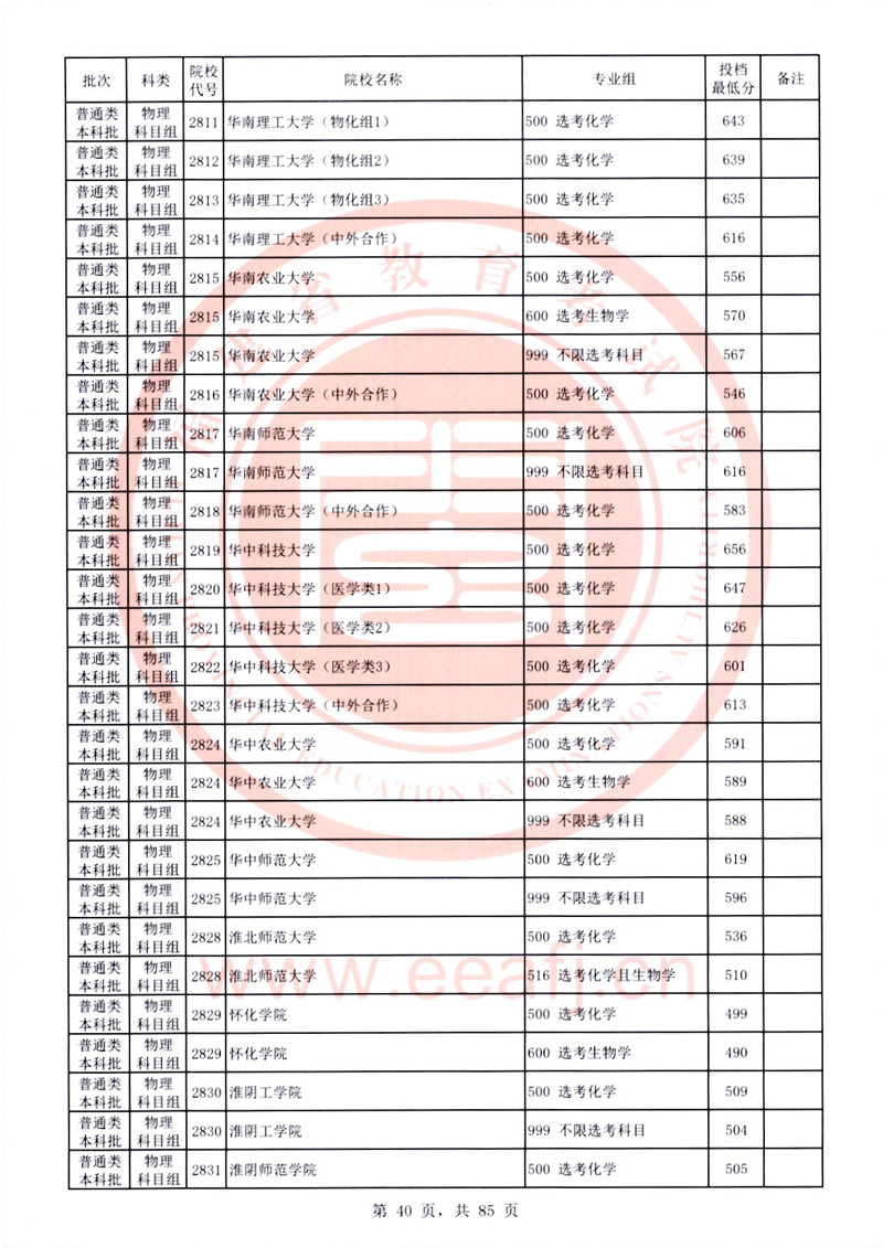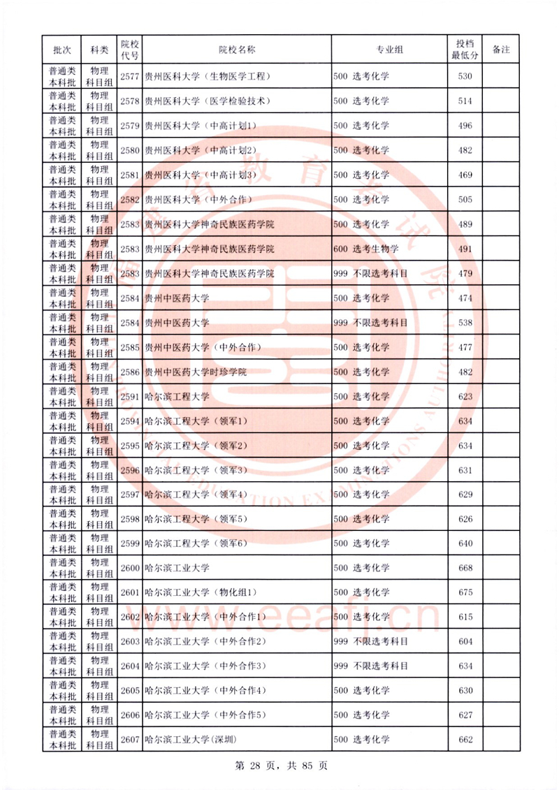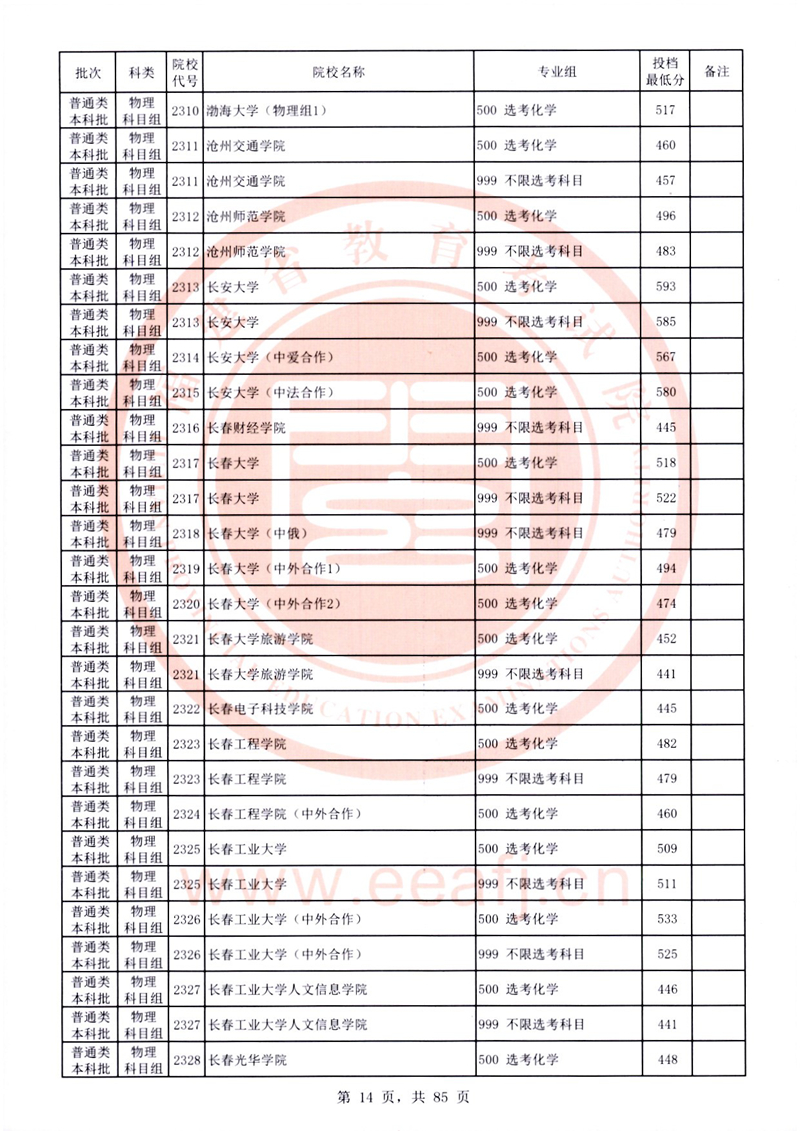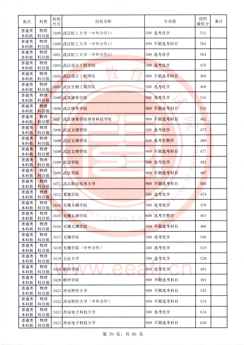 福建:2025年普通類本科批常規志愿院校專業組投檔最低分公布(物理科目組)