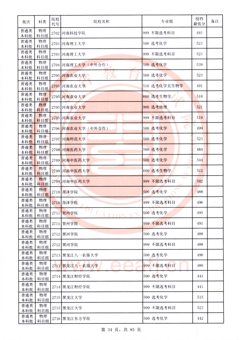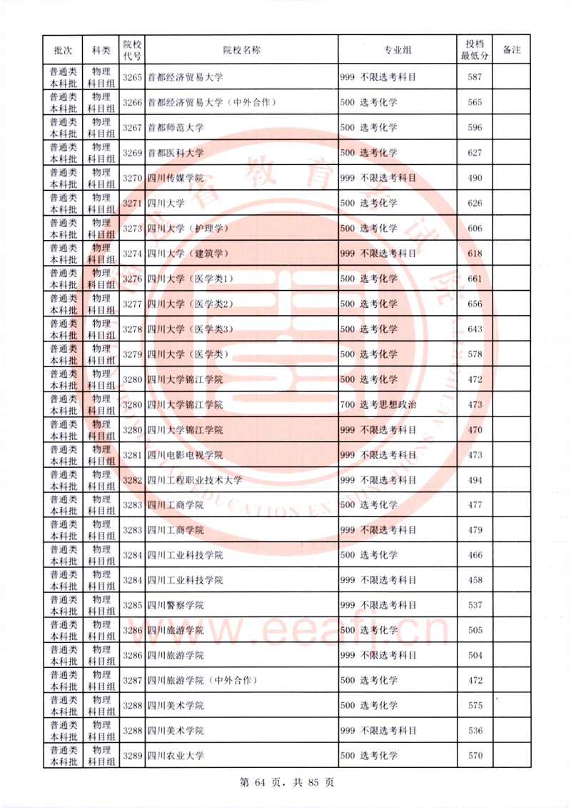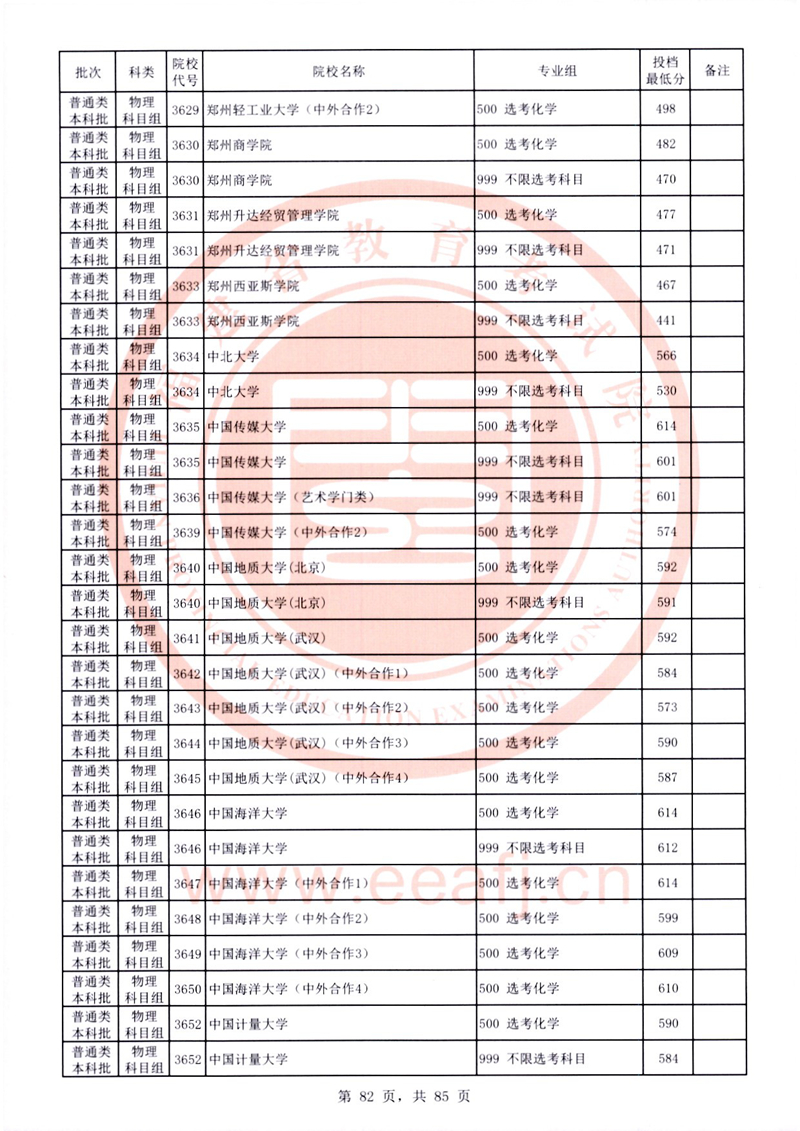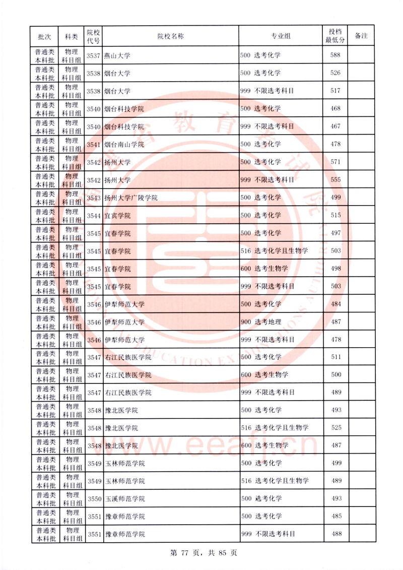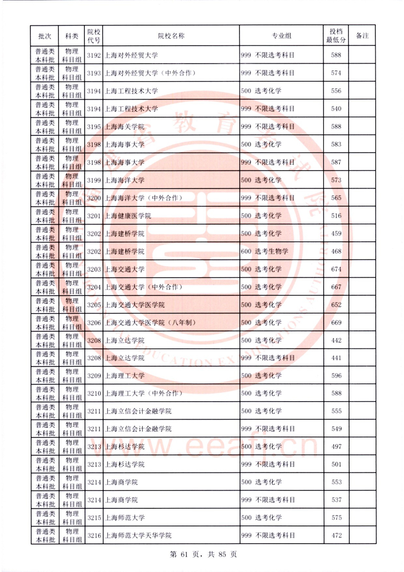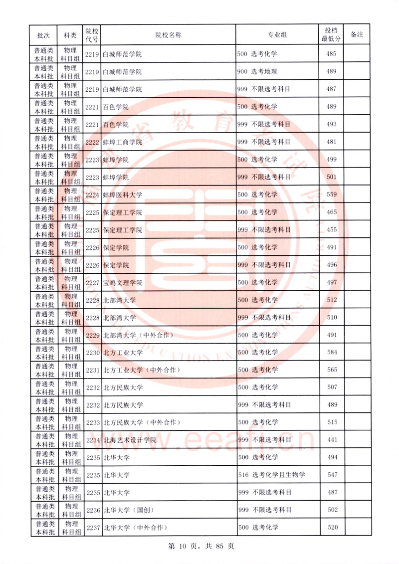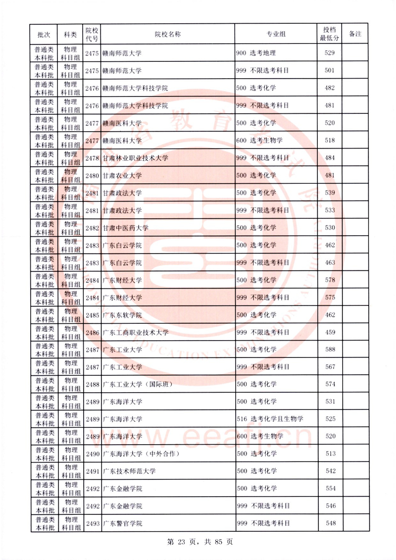 福建:2025年普通類本科批常規志愿院校專業組投檔最低分公布(物理科目組)