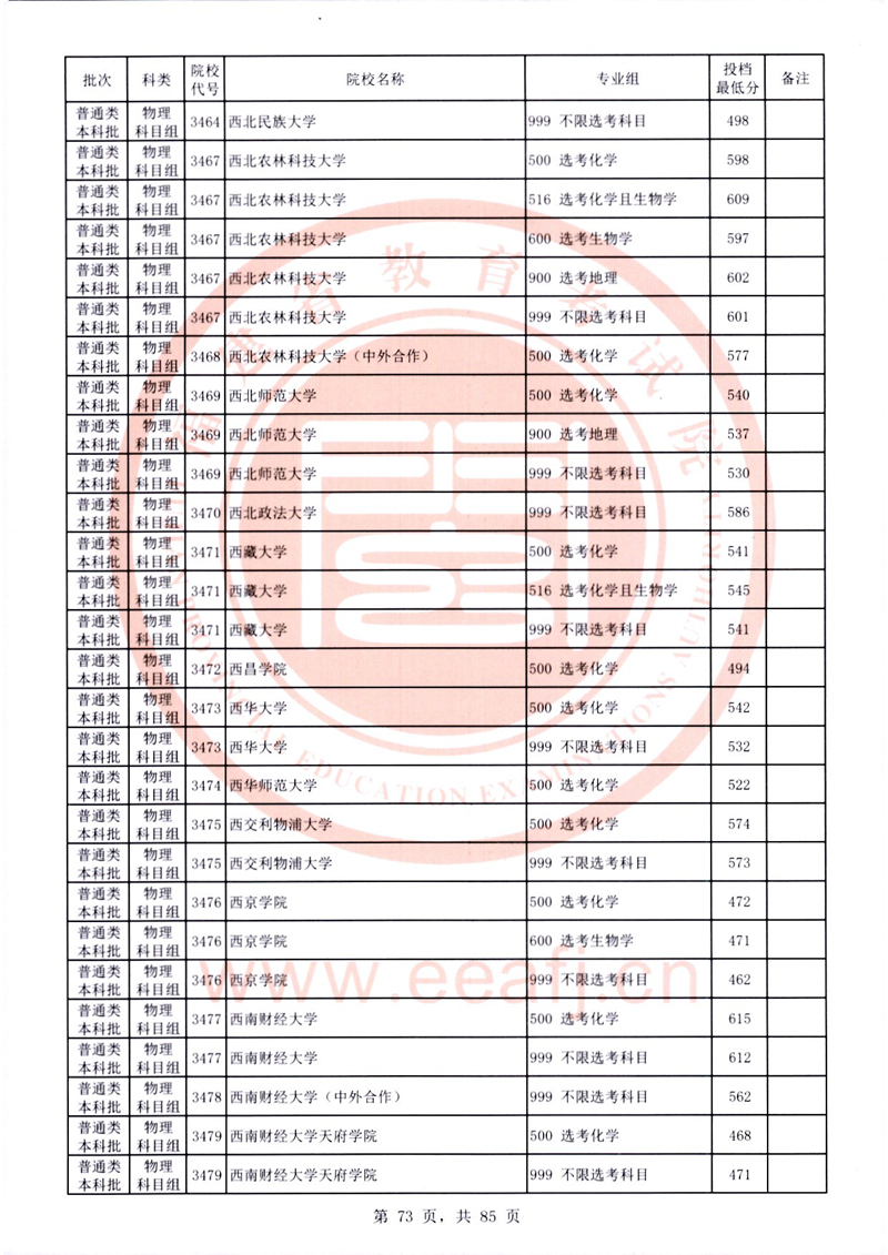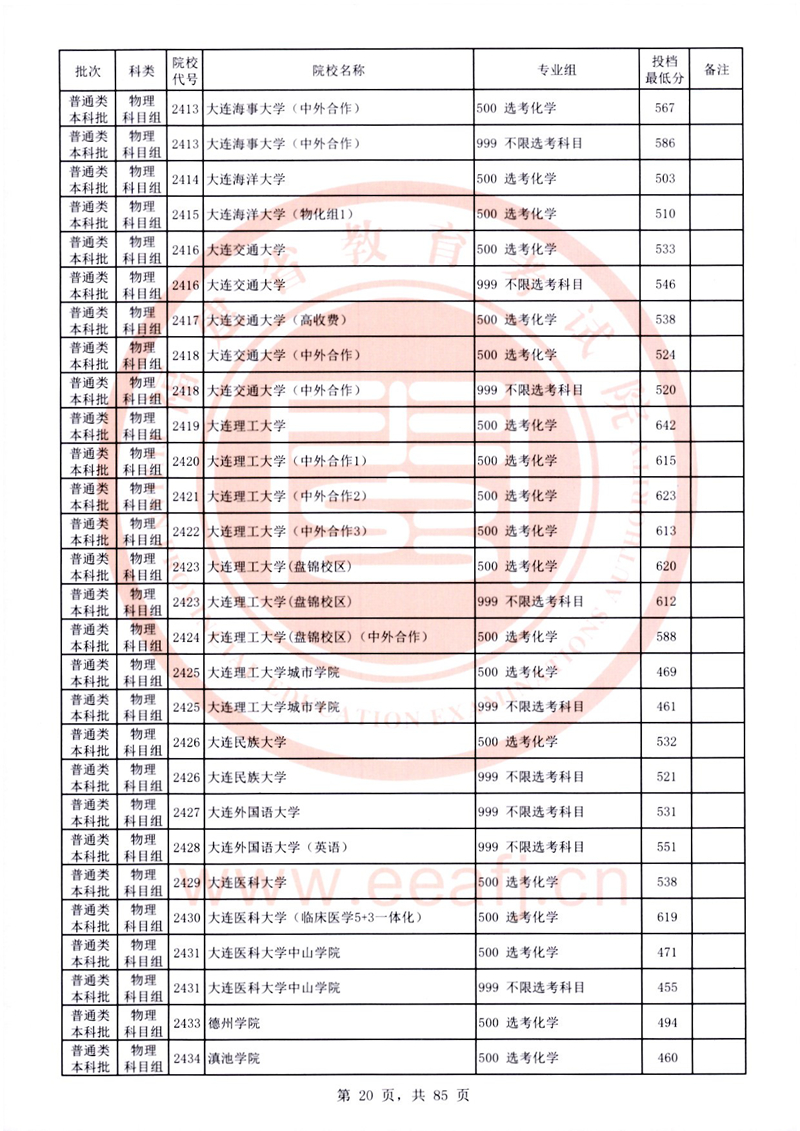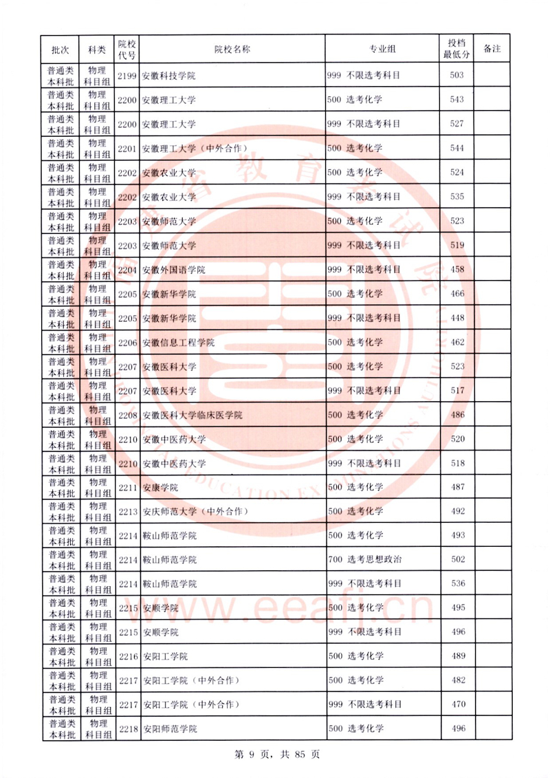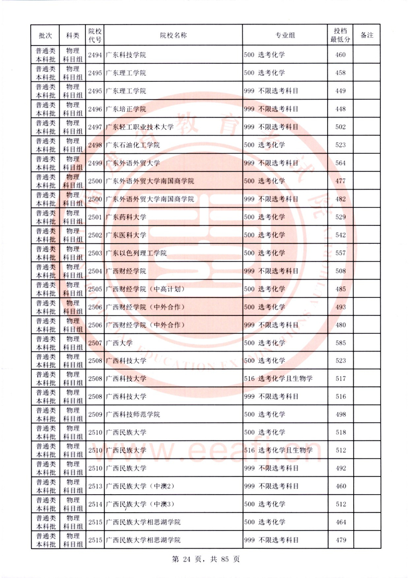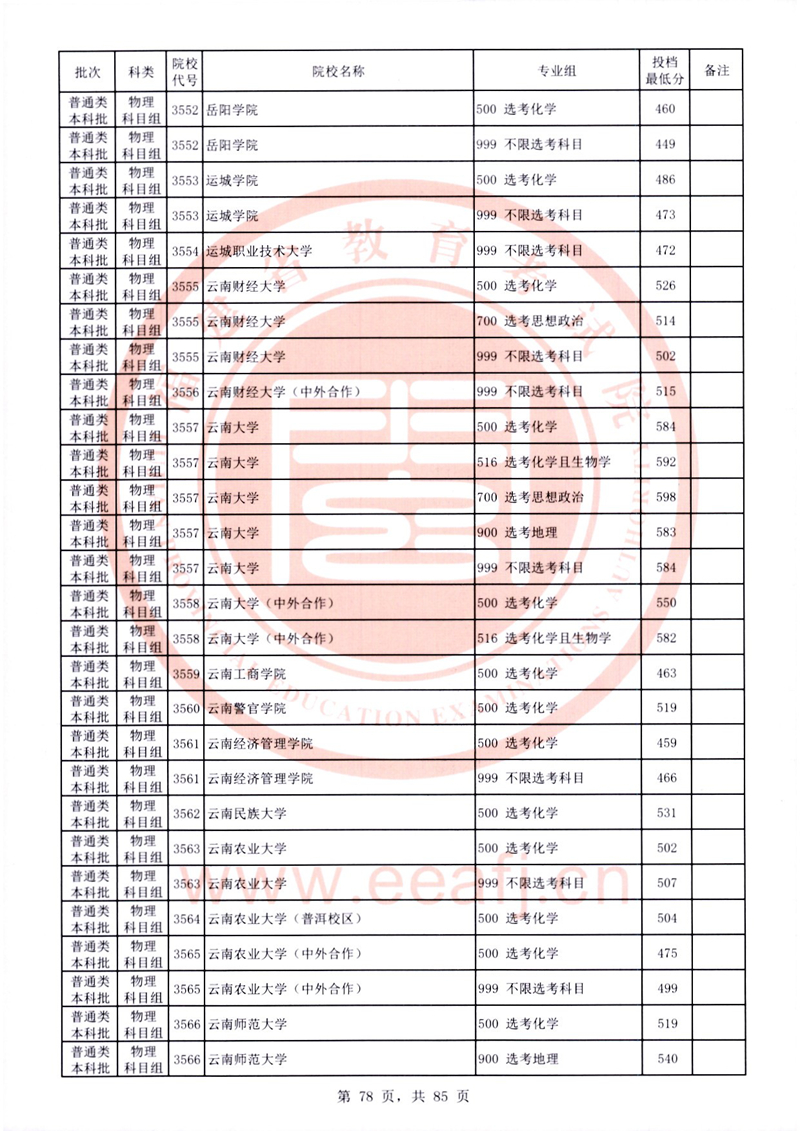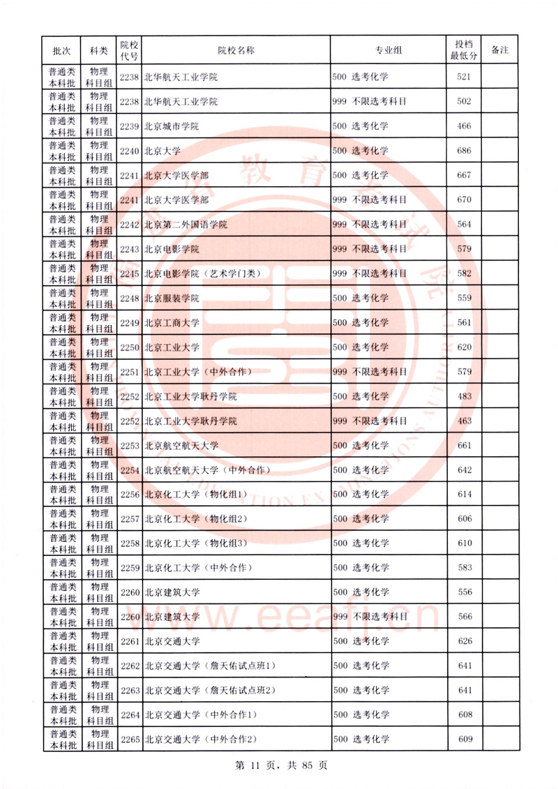 福建:2025年普通類本科批常規志愿院校專業組投檔最低分公布(物理科目組)