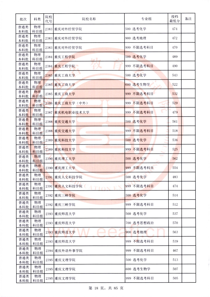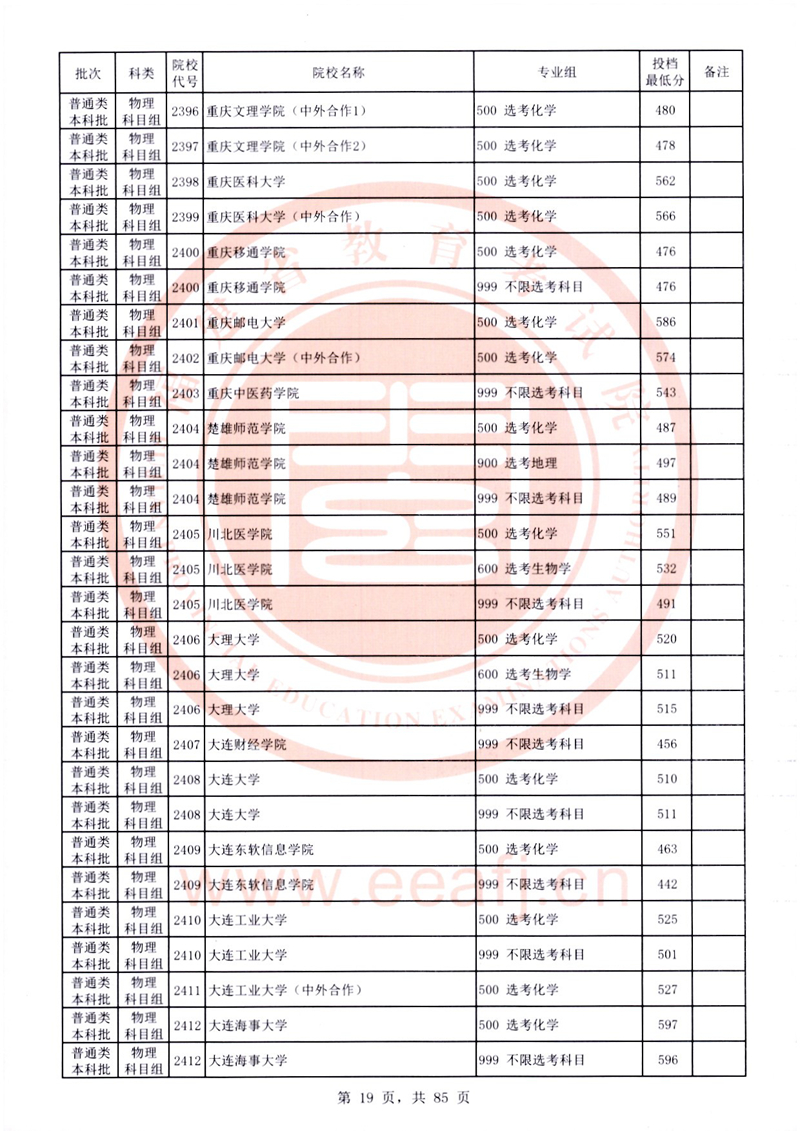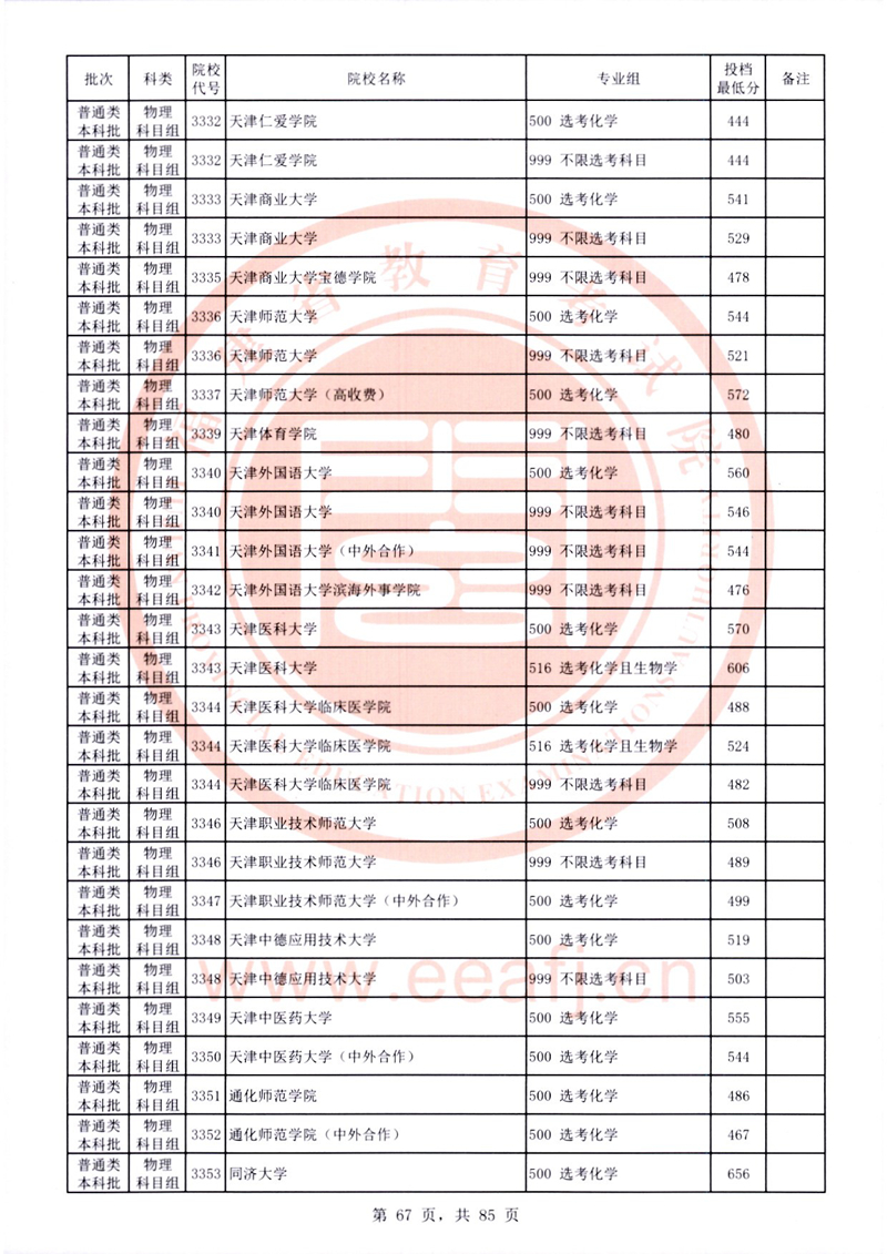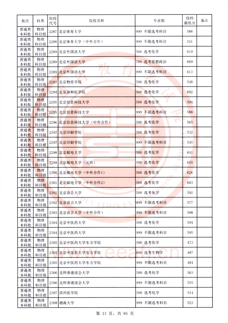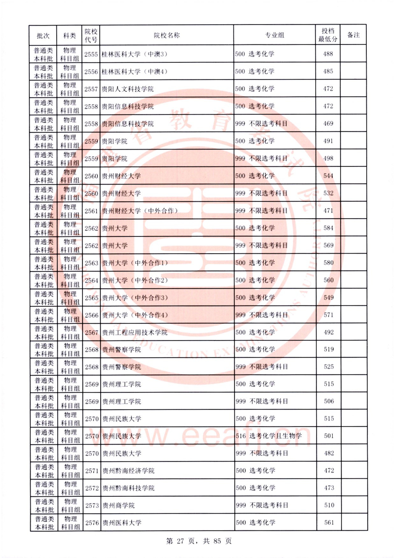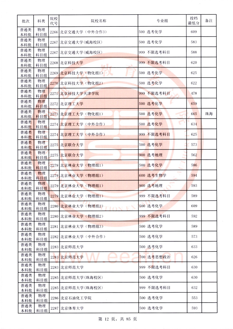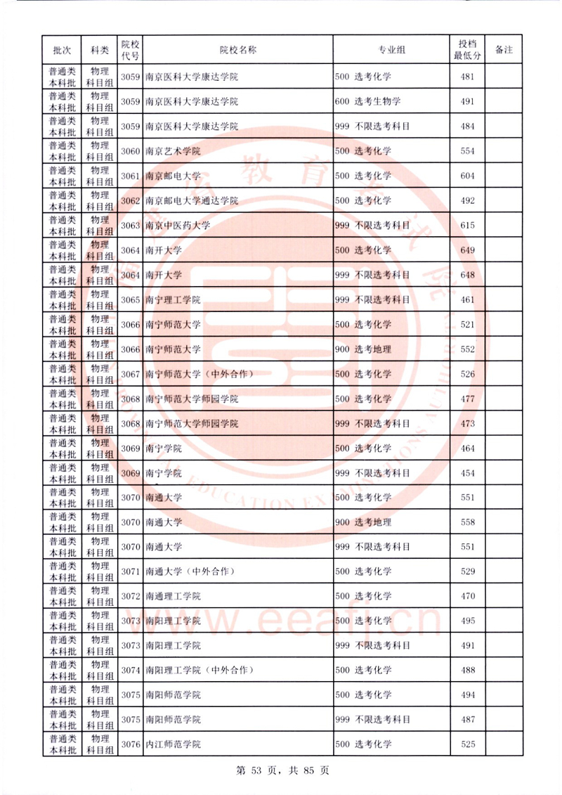 福建:2025年普通類本科批常規志愿院校專業組投檔最低分公布(物理科目組)