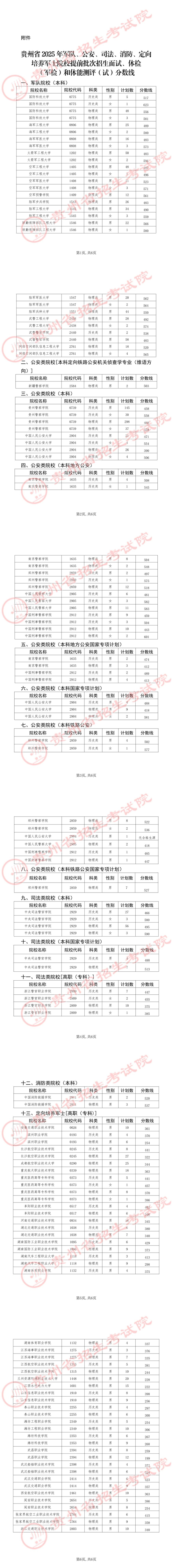 貴州省2025年軍隊、公安、司法、消防、定向培養(yǎng)軍士院校提前批次招生面試、體檢(軍檢)和體能測評(試)分?jǐn)?shù)線.pdf(點(diǎn)擊查看PDF文件)
