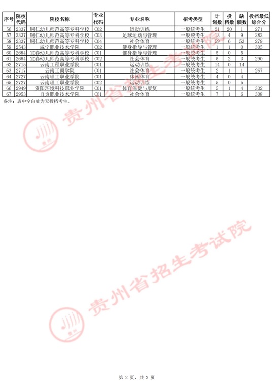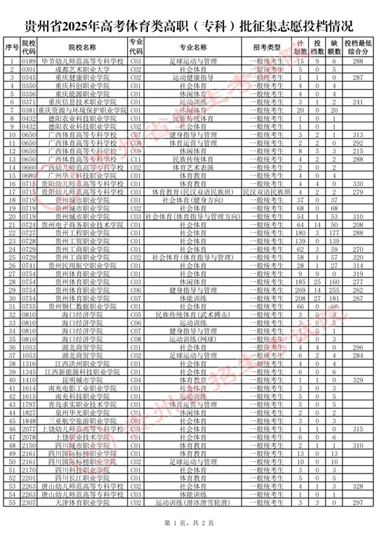 貴州省2025年高考體育類高職(專科)批征集志愿投檔情況 |