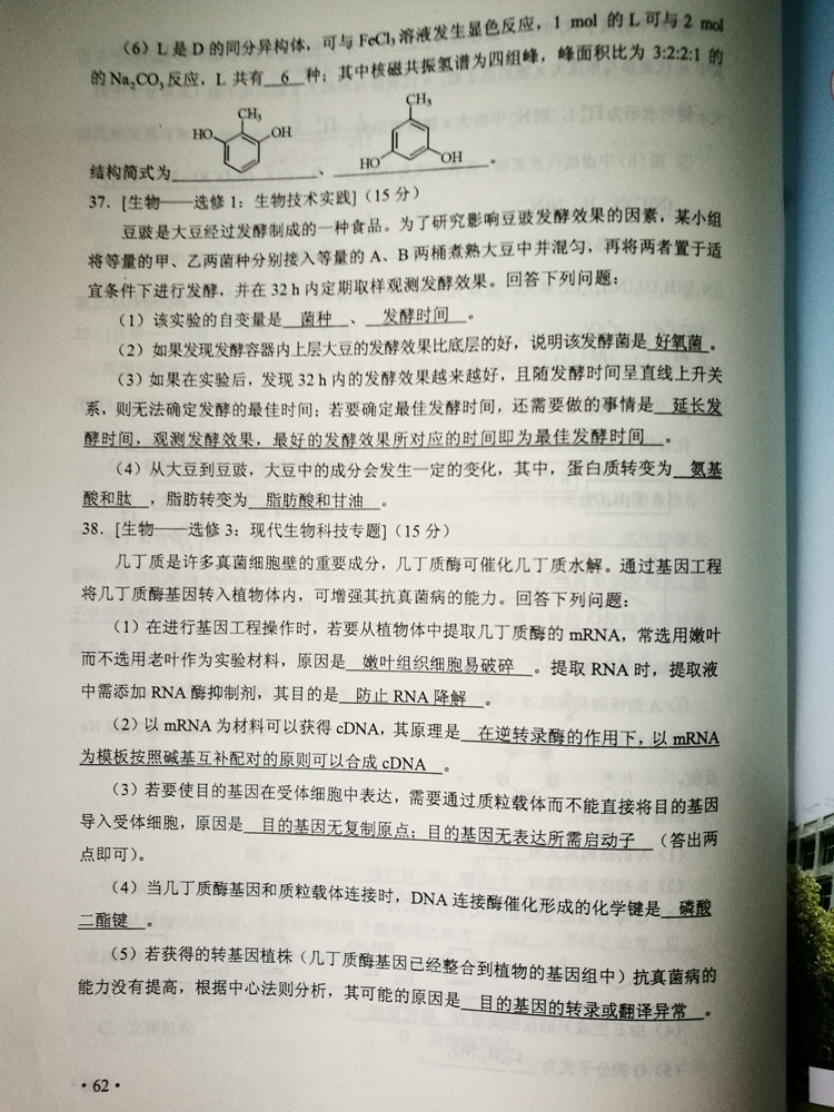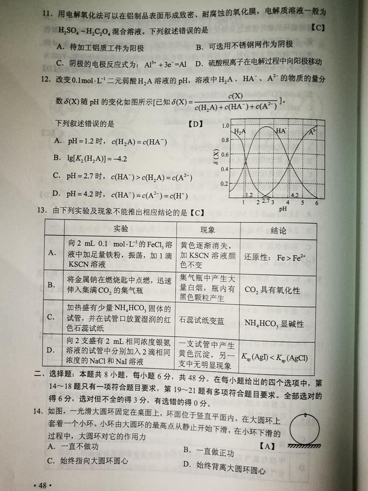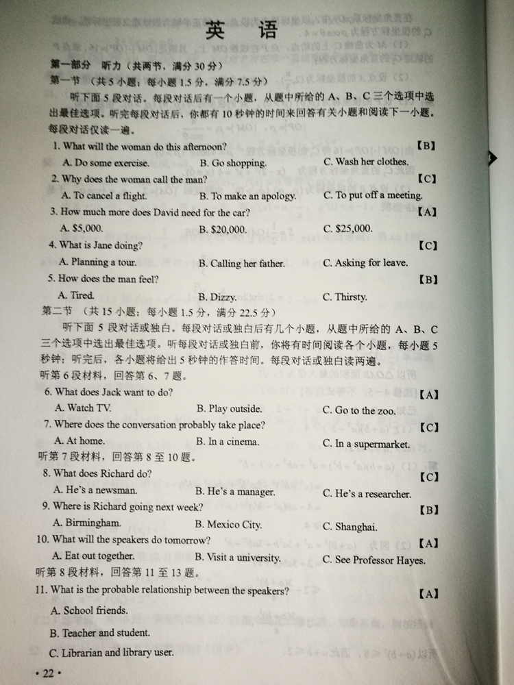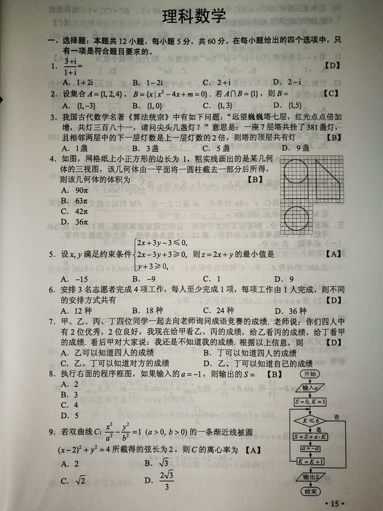 陜西:2017年普通高等學校招生考試試題及參考答案