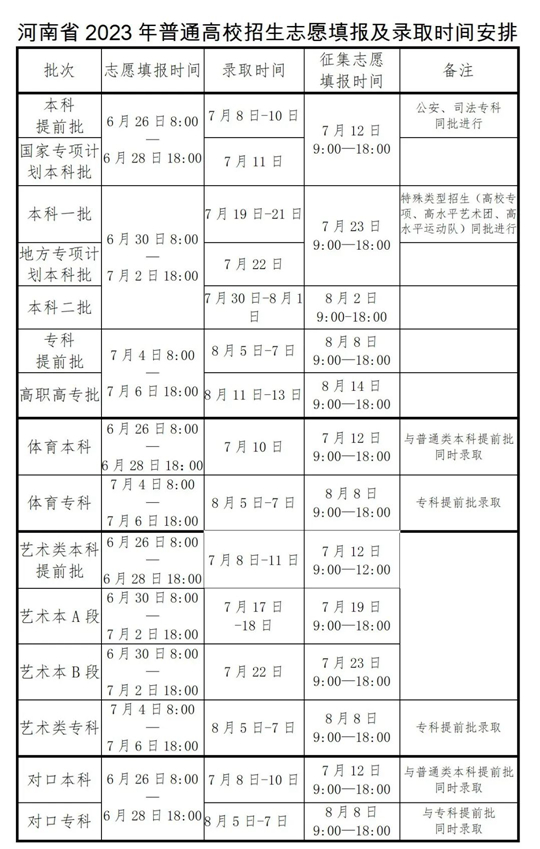 2023年河南省普通高校招生志愿填報(bào)及錄取時(shí)間安排 |